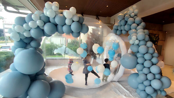 Η απόλυτη Διασκέδαση σε κάθε παιδικό πάρτι. Εάν θέλετε το πάρτι σας να ξεχωρίσει, τότε σας έχουμε μια πρωτότυπη ιδέα, το φουσκωτό ιγκλού ή αλλιώς Bubble House. Τα μπαλόνια που αιωρούνται είναι σε χρώματα της επιλογής σας.