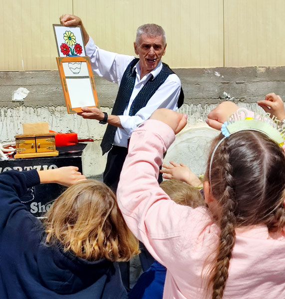 Το αγαπημένο των παιδιών: η ενεργή συμμετοχή τους στο πρόγραμμα του ταχυδακτυλουργού. Για την ακρίβεια, κατά τη διάρκεια της παράστασης, τα παιδιά θα γίνουν βοηθοί του μάγου ή ασκούμενοι ταχυδακτυλουργοί. Κατόπιν, θα εκτελέσουν εντυπωσιακά τρικ.