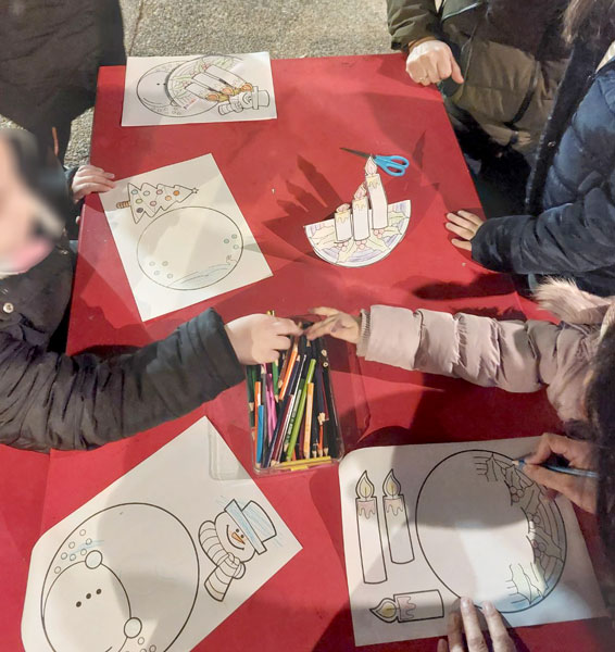 Τα παιδιά, μαζί με τους γονείς τους, κατασκευάζουν πρωτότυπα χριστουγεννιάτικα διακοσμητικά, ιδανικά για το παιδικό δωμάτιο — και όχι μόνο! Με απλά υλικά όπως χαρτί, πηλό, ζυμαρικά και υφάσματα, δημιουργούν μοναδικά έργα τέχνης.