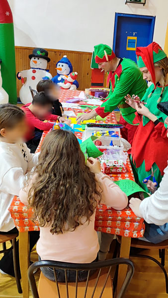 Παράλληλα, με τη βοήθεια των ειδικών, γράφουν μέσα στις κάρτες τις ευχές τους για το νέο έτος. Έπειτα, έχουν τη δυνατότητα είτε να τις κρεμάσουν στο χριστουγεννιάτικο δέντρο είτε να τις τοποθετήσουν κάτω από αυτό, συμβάλλοντας στη γιορτινή ατμόσφαιρα.