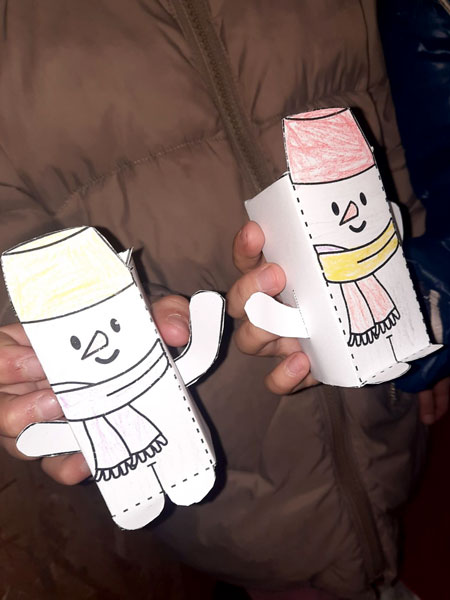 Καθώς πλησιάζουν οι γιορτές, τα παιδιά μπαίνουν σε εορταστικό κλίμα και δημιουργούν τις δικές τους Χριστουγεννιάτικες κάρτες. Αρχικά, ζωγραφίζουν και κόβουν χαρτόνια με οδηγό τη φαντασία τους. Στη συνέχεια, διακοσμούν τις κάρτες τους με στολίδια, γιρλάντες, χάντρες, κουμπιά, ζυμαρικά αλλά και με ανακυκλώσιμα υλικά, ανακαλύπτοντας έτσι την αξία της επαναχρησιμοποίησης.